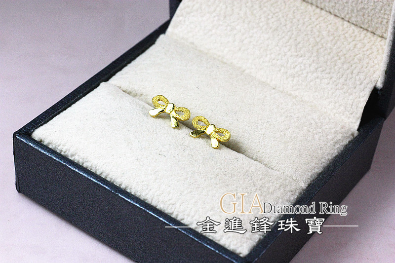 品名:鑽沙蝴蝶結黃金耳環