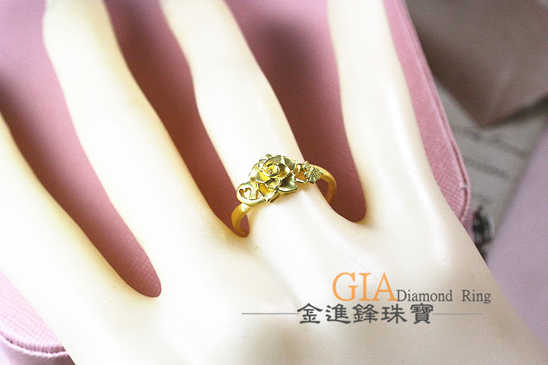 品名:玫瑰愛心黃金戒指