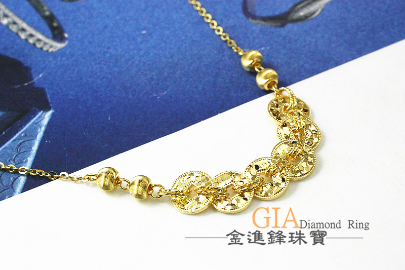 品名:碎冰五帝錢貓眼黃金項鍊